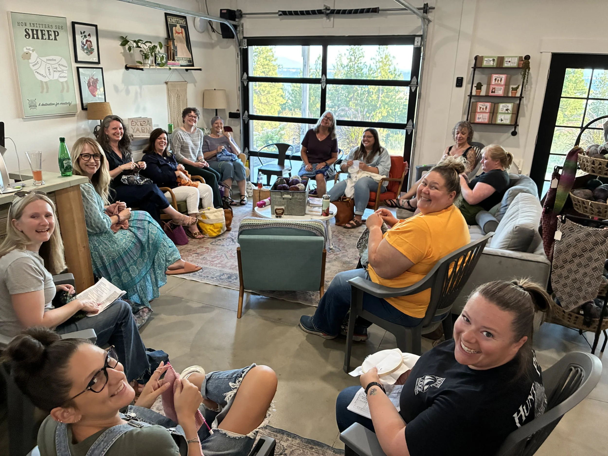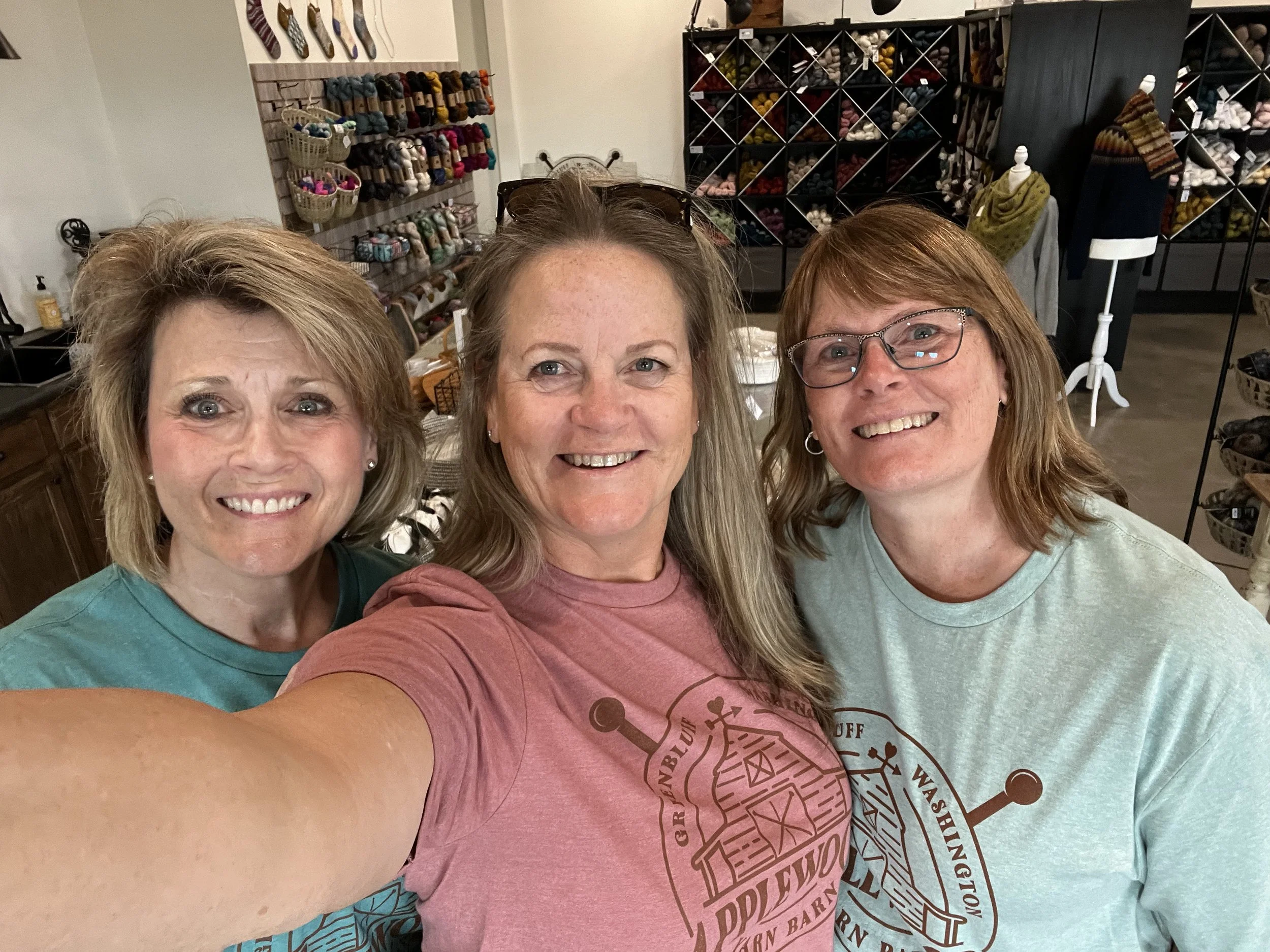 How it all started…Nettie, Amy and Dianna were excited to attend the Vogue Knitting Live event in Seattle in April 2022 and created our own Yarn Crawl while we were in Seattle. We visited many cozy, quaint, full to the brim and unique stores during our visit. After each visit, we naturally fell into discussion about what we liked, the quality of the yarn, the uniqueness of the products and the feel of the store. When Amy took over the driving, Nettie started sketching a vision on her iPad of what her and Rick’s barn would look like, and carved out a piece of the barn, for the vision of a yarn store. We had great discussions and brainstorming while on the Ferry ride from Seattle. We batted around names, played with logo’s and landed on Applewood Yarn Barn. Applewood Lane is their street name, and after floating around other names with Green Bluff in them, we landed on Applewood Yarn Barn. We are located on Applewood and we are actually in a Barn! We began our business plan, our must-haves and really just brainstormed all the intricacies of dreaming up a business. That was a very valuable time away for all of us and seeing those dreams on the iPad come to life have been fascinating.